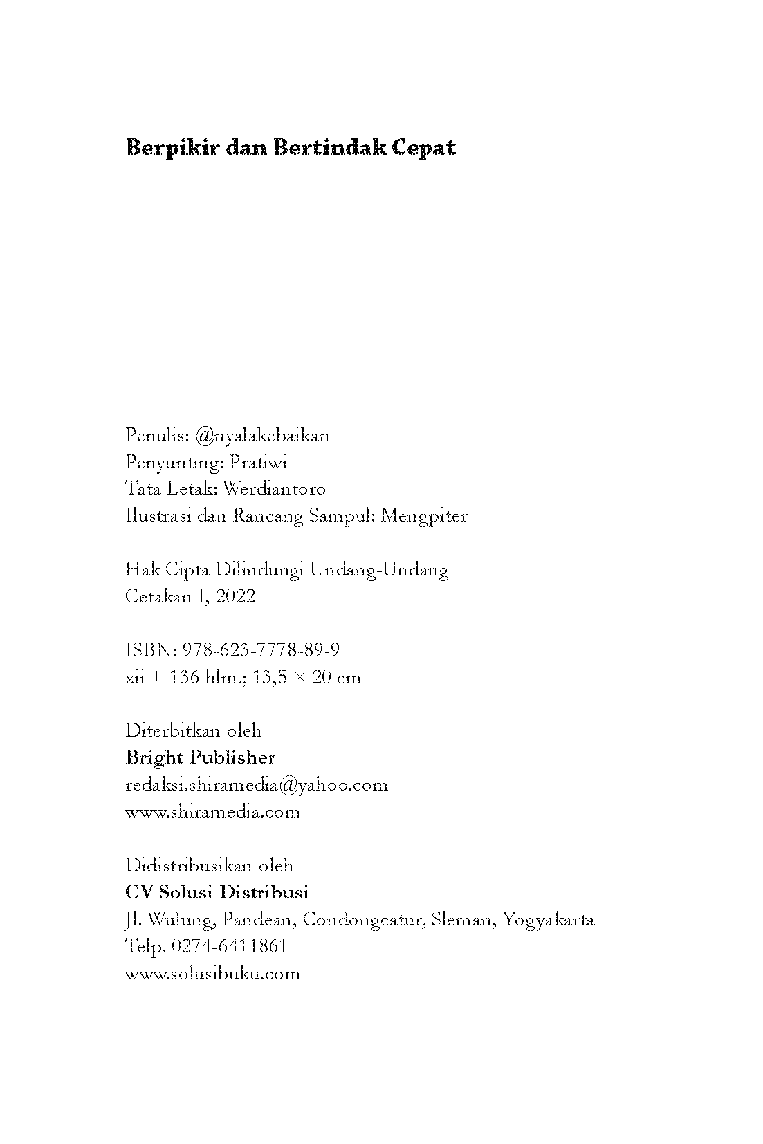 Buku ini memberikan gambaran tentang usaha meningkatkan kemampuan pikiran agar hidup Anda lebih bahagia dan bermanfaat bagi banyak orang. meskipun hubungan pikiran, emosi, dan keinginan manusia itu cenderung rumit, Anda dapat mengetahui fondasinya melalui buku ini.
