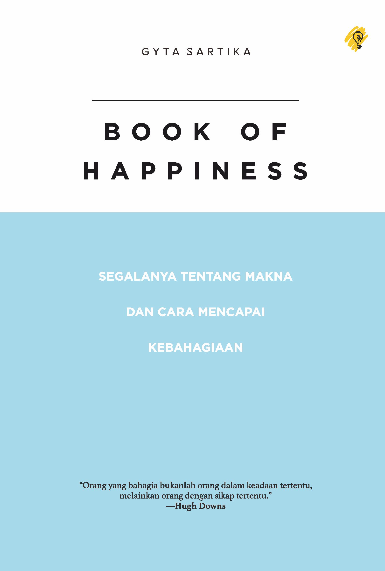 Buku ini merupakan catatan tentang makna dan cara mencapai kebahagiaan. Anda akan diajak memasuki dunia manusia yang selalu ingin bahagia tapi sering kali tidak mengetahui jalan untuk mendapatkannya. Filosofi dan langkah-langkah yang disampaikan di dalam teks ini dapat Anda jadikan pegangan untuk menata diri dan hati demi kehidupan yang bahagia.