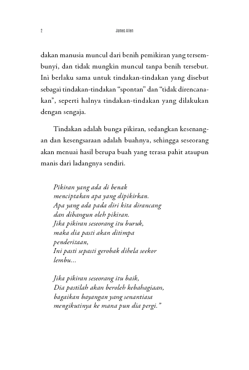 Sebagaimana tanaman yang muncul dari benih, dan tidak mungkin ada tanpa benih, demikian pula setiap tindakan manusia muncul dari benih pemikiran yang tersembunyi, dan tidak mungkin muncul tanpa benih tersebut. Ini berlaku sama untuk tindakan-tindakan yang disebut sebagai tindakan-tindakan “spontan” dan “tidak direncanakan”, seperti halnya tindakan-­tindakan yang dilakukan dengan sengaja.