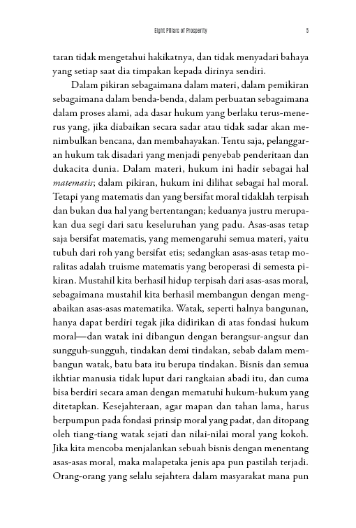Ada anggapan umum bahwa kemakmuran yang lebih besar bagi individu atau bangsa hanya bisa didapat melalui rekonstruksi politik dan sosial. Ini tidak benar, apa pun praktik kebajikan moral dalam diri individu yang membentuk suatu bangsa. Kondisi hukum dan kondisi sosial yang lebih baik senantiasa membarengi perwujudan moralitas yang lebih tinggi di antara individu-individu di suatu masyarakat, namun tak ada penegakan hukum yang dapat menyejahterakan, bahkan tidak dapat mencegah kehancuran manusia atau negara yang telah melonggar dan merosot dalam mengejar dan mempraktikkan kebajikan.