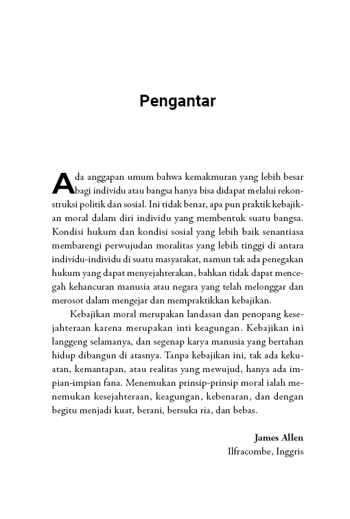 Kebajikan moral merupakan landasan dan penopang kesejahteraan karena merupakan inti keagungan. Kebajikan ini langgeng selamanya, dan segenap karya manusia yang bertahan hidup dibangun di atasnya. Tanpa kebajikan ini, tak ada kekuatan, kemantapan, atau realitas yang mewujud, hanya ada impian-impian fana. Menemukan prinsip-prinsip moral ialah menemukan kesejahteraan, keagungan, kebenaran, dan dengan begitu menjadi kuat, berani, bersuka ria, dan bebas.