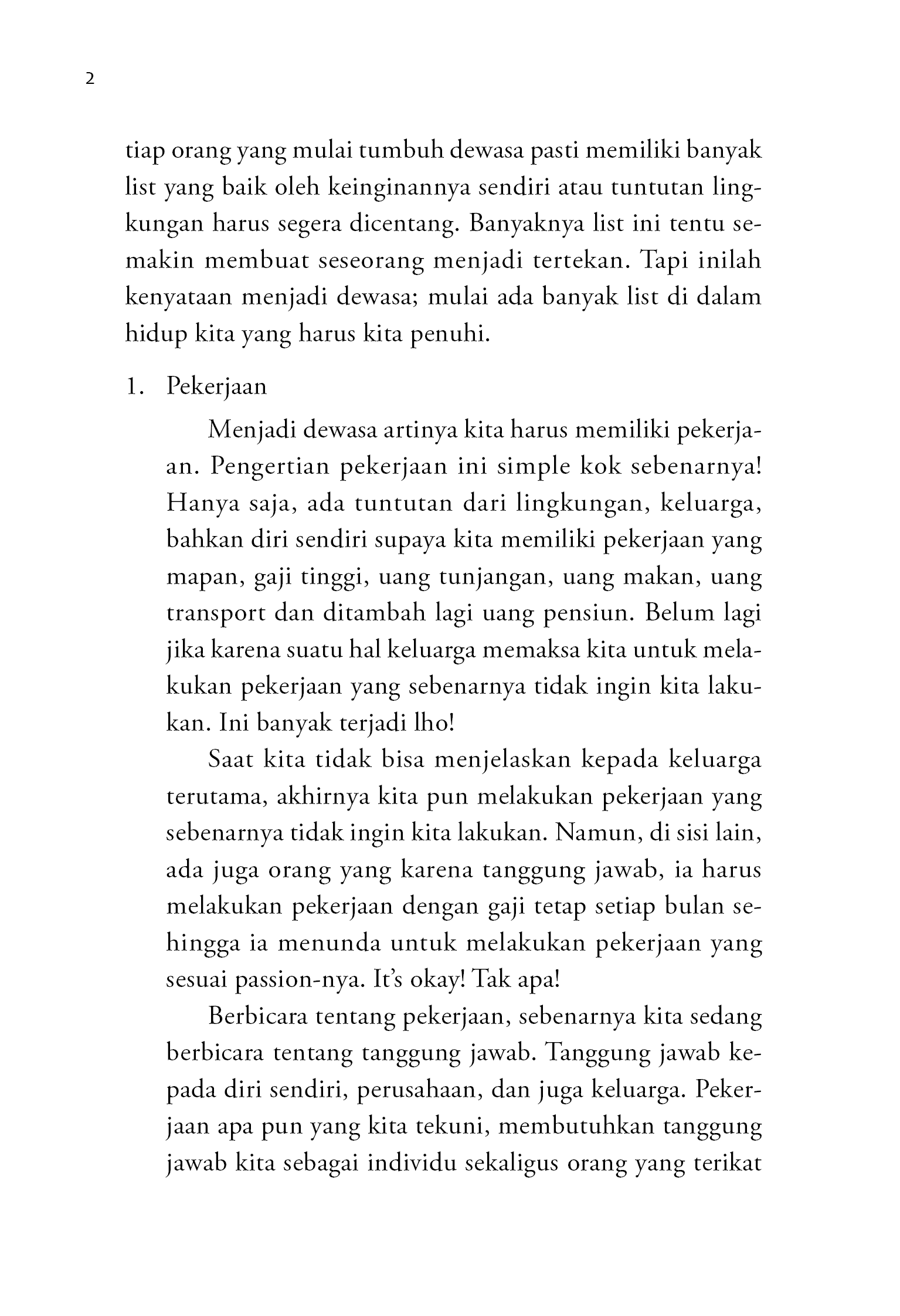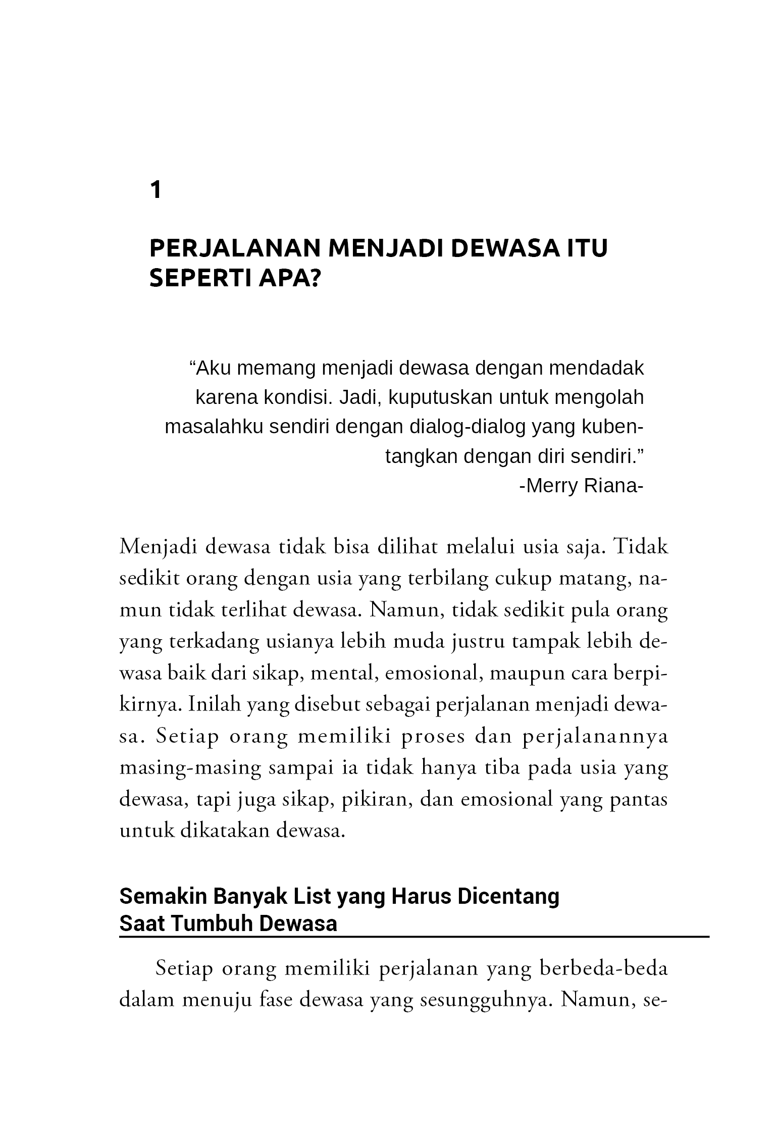 “Aku pengen cepat besar biar bisa main ke mana saja. Biar bisa kerja dan punya uang sendiri.” Pernah berekspektasi seperti ini? Saya rasa bukan hanya kita saja yang pernah seperti ini, tapi banyak orang di luar sana setidaknya sekali dalam masa kecilnya pernah berekspektasi bahwa menjadi dewasa menjadi hal yang sangat menyenangkan. Iya, menyenangkan memang. Tapi di balik hal-hal yang menyenangkan ini ternyata ada banyak gempuran yang terkadang memaksa orang dewasa untuk tetap bertahan dan menjaga kewarasannya.
