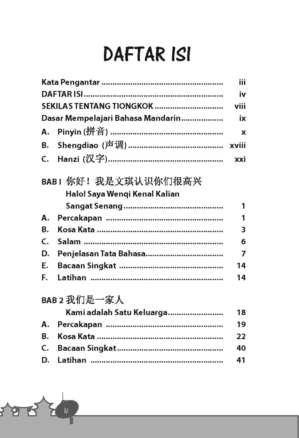 Buku ini disusun untuk membantu belajar bahasa mandarin bagi tingkat pemula. Terdapat soal soal latihan dan kunci jawaban yang diharapkan mampu lebih mengasah kemampuan berbahasa Mandarin.